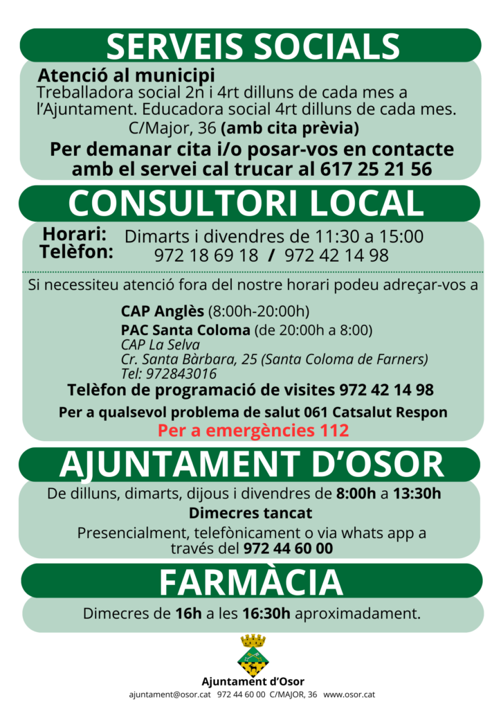 A aquest apartat podreu trobar la informació relacionada amb els serveis de l’Ajuntament d’Osor.